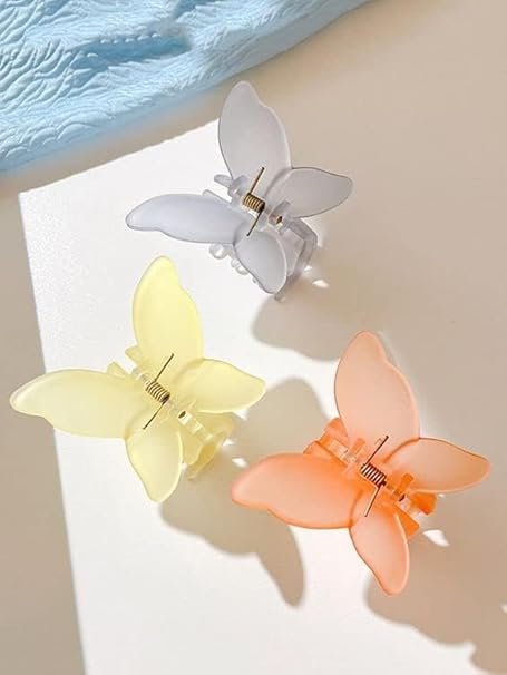Set of 6 cute matte jelly butterfly hair clips for women. Strong grip, lightweight, and perfect for thick or thin hair. Ideal for daily styling, parties, college, and casual wear.