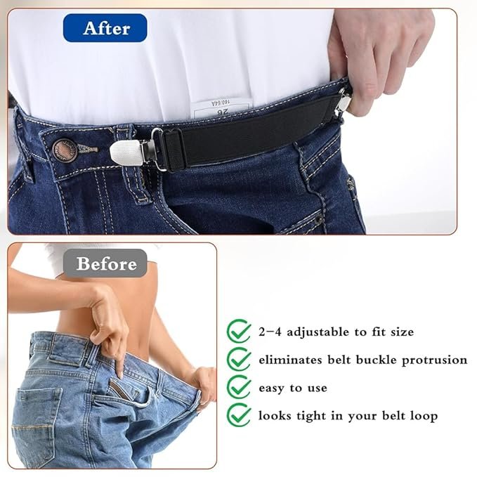 Made from strong elastic material with durable metal clips, it provides a secure grip while remaining comfortable to wear. The adjustable design allows you to customize the fit according to your waist size, enhancing both comfort and appearance. Easy to attach and remove, this belt band cinch clip is ideal for daily wear, office use, travel, and fashion styling.