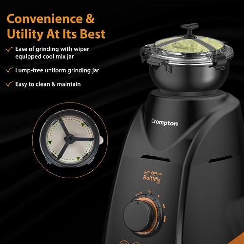Buy Crompton Boltmix Cool 750 W Mixer Grinder with 3 Jars — Powerful and stylish kitchen appliance with a 750 W motor and 3 versatile jars, delivering efficient grinding, blending, and mixing performance. Designed for smooth operation, durable build, and everyday convenience — perfect for all your cooking needs.