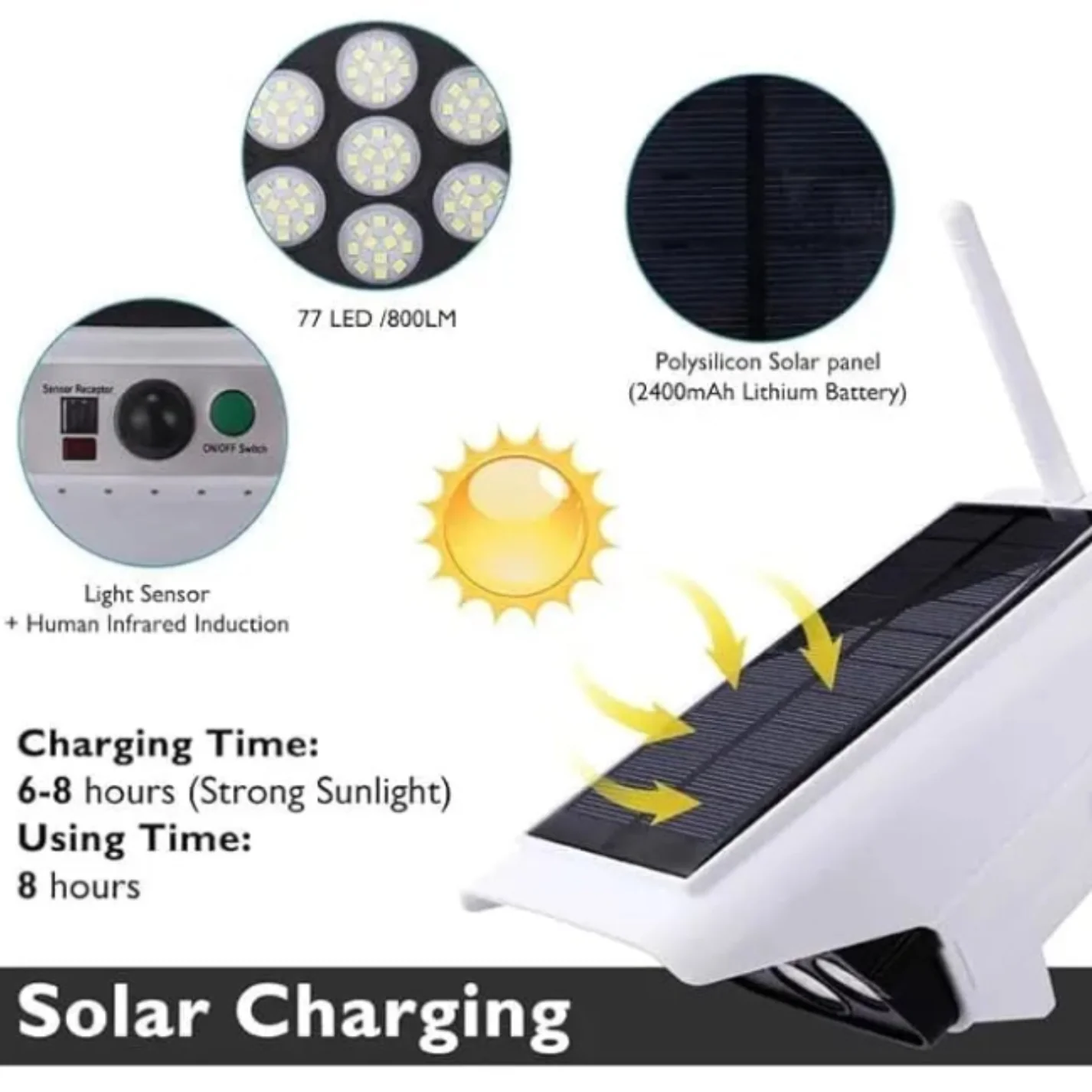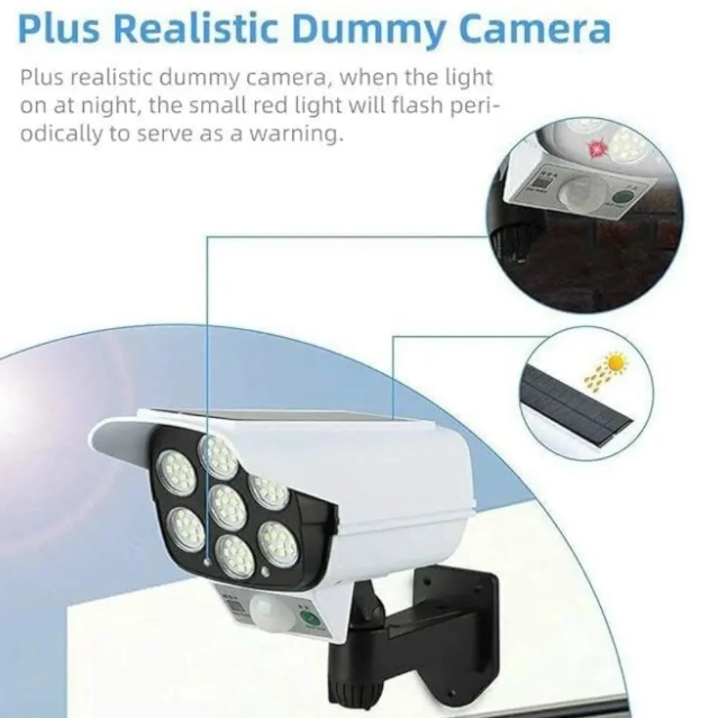 Enhance home security while adding a stylish touch with the Camera Shape Solar Motion Sensor Light. Designed to look like a real surveillance camera, it helps deter trespassers while providing bright illumination whenever motion is detected. With solar-powered charging, it works wirelessly and runs automatically—charging during the day and lighting up at night without electricity.