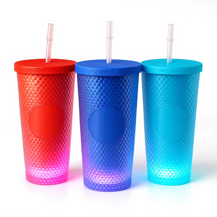 Diamond Cup LED Straw Cup — double-layer insulated plastic cup with glowing LED lights. Durable, stylish, and perfect for drinks, parties, and fun gifting.