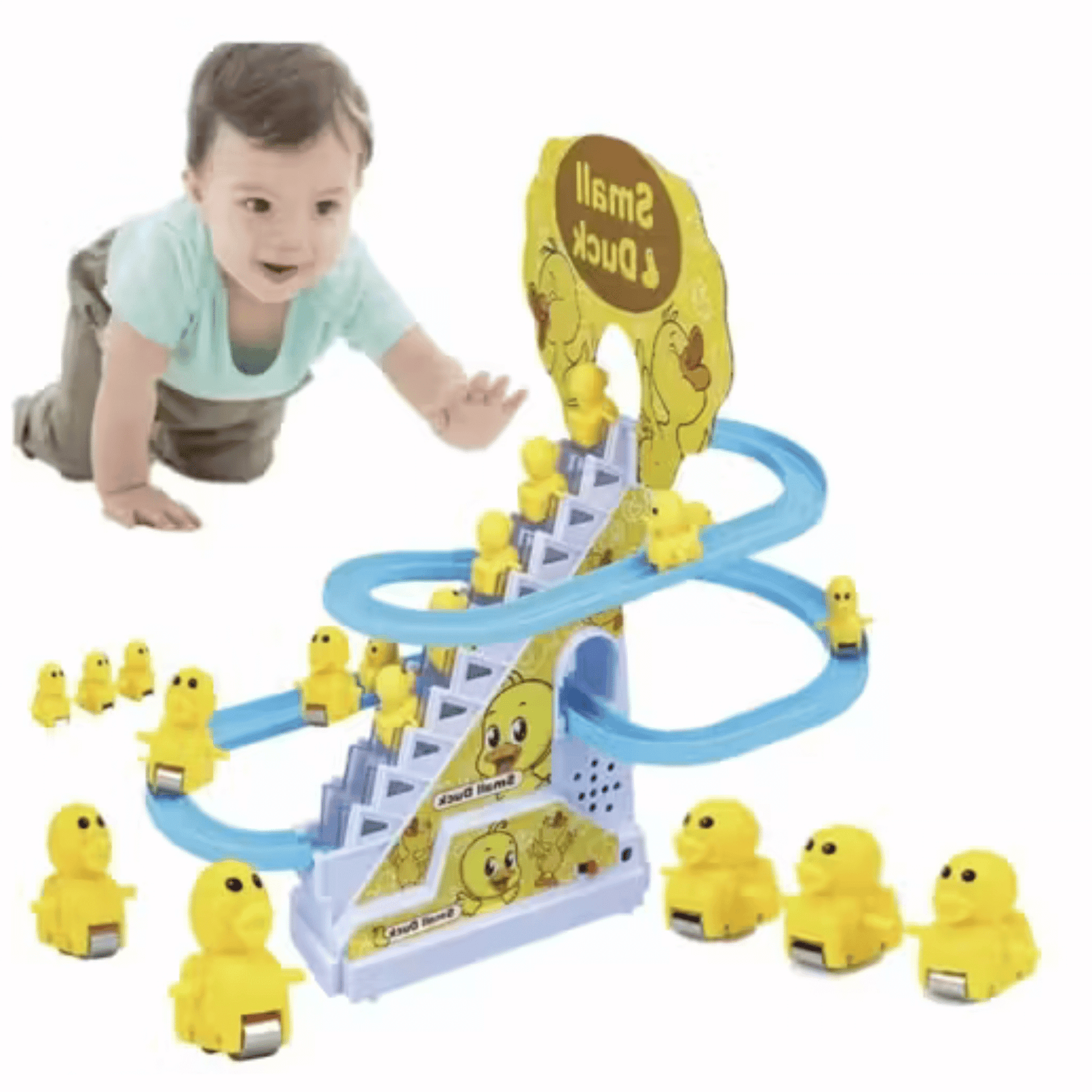 Ducks climb the stairs and joyfully slide down the slope. Perfect for Christmas Gifts, Birthday Gifts, and Novelty Gifts.