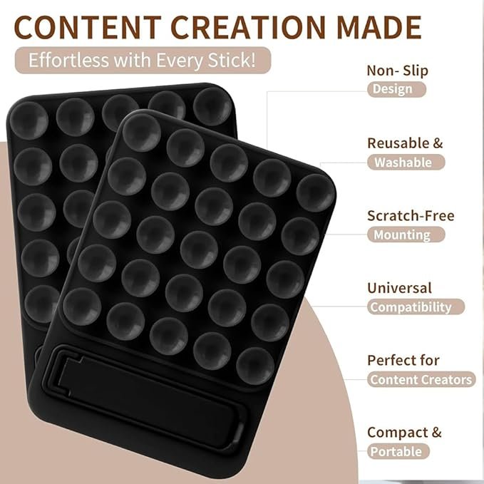 Experience effortless hands-free convenience with the Fashionury Anti-Slip Silicone Suction Phone Mount, designed to stick securely to smooth surfaces for worry-free use. Made with high-quality, anti-slip silicone and advanced suction technology, this sticky pad firmly holds your phone without falling—ideal for selfies, video recording, video calls, makeup tutorials, navigation, and watching content.
