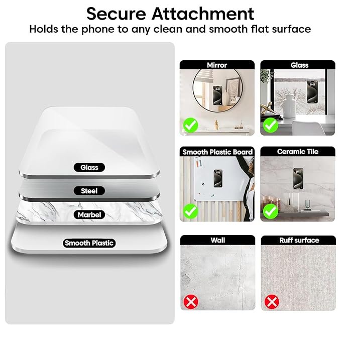 • Strong Suction Power: Sticks to mirrors, tiles, car dashboards, glass, and other smooth surfaces.