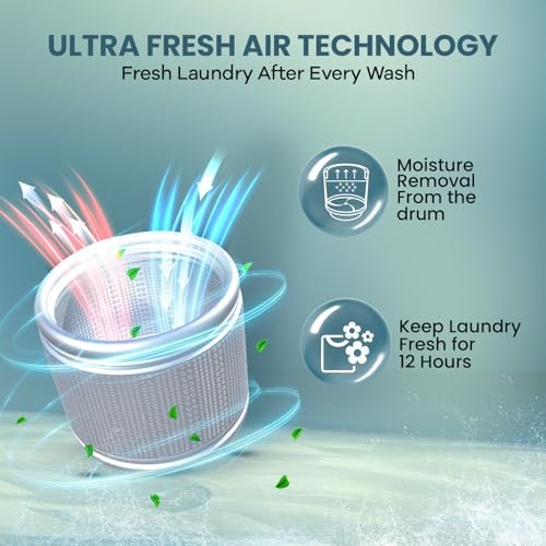 About this item Fully-automatic Top load washing machine with Ultra Air Fresh Oceanus Wave Drum and Near Zero Pressure Capacity – 7Kg : Suitable for Mid families Energy Rating 5 Star : Best in class efficiency | Energy consumption – 0.0064* KWh/kg/cycle & Water Consumption: 20.15L/Kg/Cycle (Please refer BEE label for more information) Manufacturer Warranty: 2 years on product and 10 years on motor. Additional Information : Brand Warranty can be availed using invoice. User manual can be accessed from brand website under About this item/ Product details section. 780 RPM: Higher spin speeds helps in faster wash and drying; 40 min cycle time for avg. load Wash Programs: 8 No.of Programs – “8 Wash programs:- 8 Wash programs:- wash/Rinse/Spin/Tub Dry/Smart/Soak/Delicate/Quick Drum / Pulsator type & Body material – Fully Stainless Steel Drum built to bring convenience and durability, which makes your washing machine last longer.