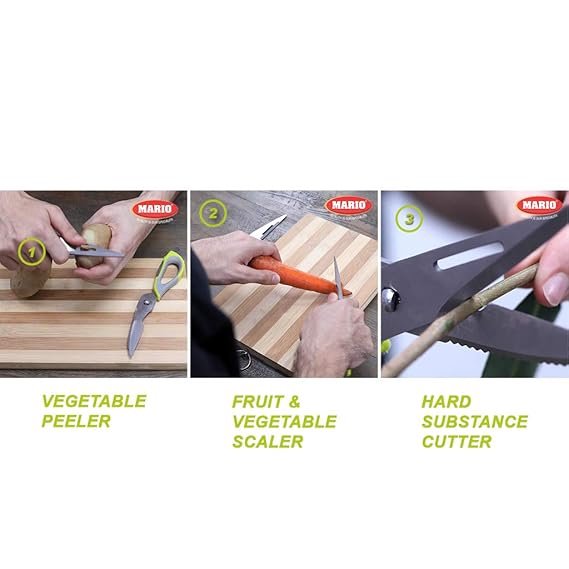 Mario 7 in 1 Premium Scissors — one tool for cutting, cracking, scaling, opening and more. Sharp stainless blades, ergonomic grip and multi-purpose design make it perfect for kitchen, craft and daily use