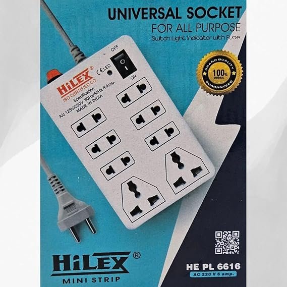 Power multiple devices safely and conveniently with the Mini Strip 8 Plug Point Extension Strip with Cable — a compact yet highly efficient power solution for home, office, and travel use. With 8 multi-purpose plug slots, it allows you to connect chargers, adapters, laptops, kitchen appliances, lights, fans, and other electronics all at once.