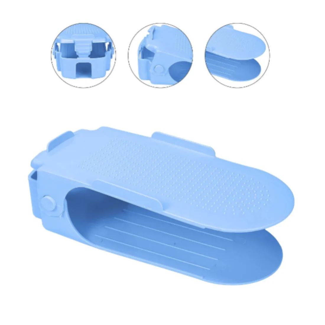 Designed with adjustable height levels, it fits slippers, sneakers, sandals, heels, loafers, and sports shoes easily. The anti-slip top surface and sturdy base keep shoes firmly in place, preventing falls, creasing, and clutter. Made from high-quality, durable plastic, this shoe organiser is lightweight, long-lasting, and easy to clean.