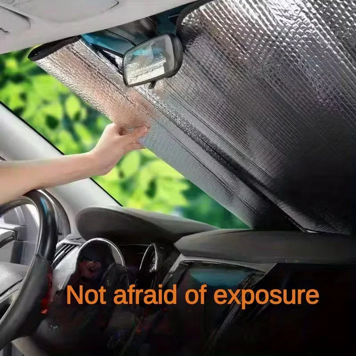 UV Protection Double-Sided Aluminum Foil Car Sunshade – high-quality reflective windshield sunshade designed to block heat, UV rays, and glare. Keeps your car cool, protects the dashboard, and prevents interior fading.